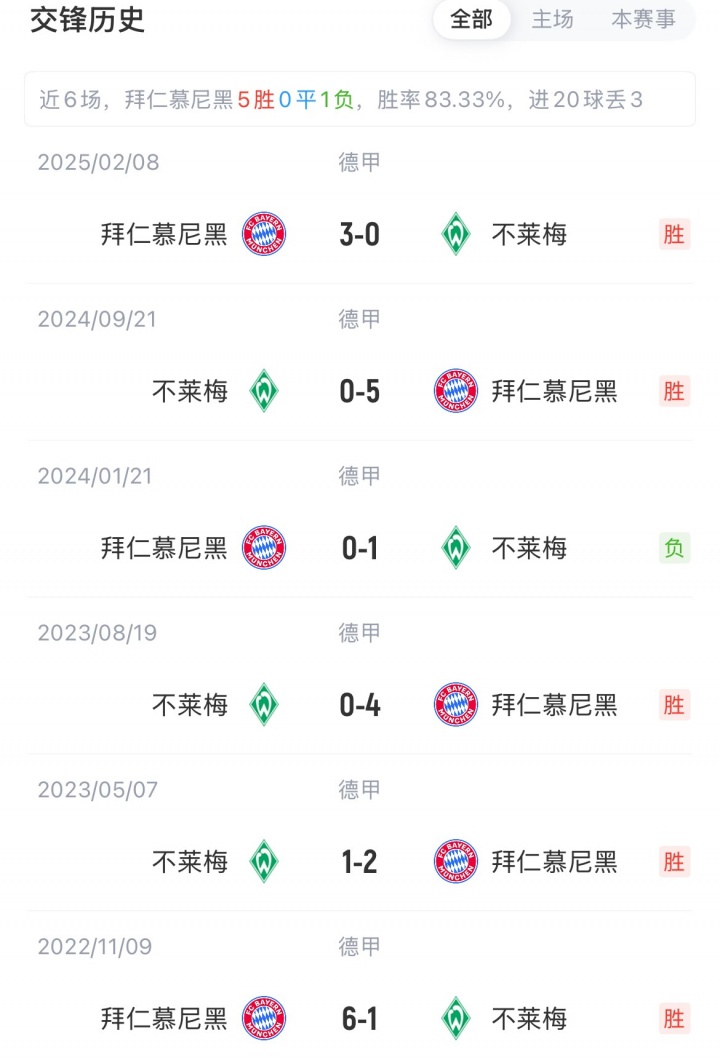拜仁职业联赛 开局四连胜领跑。不莱梅1胜1平2负,暂排第12名。