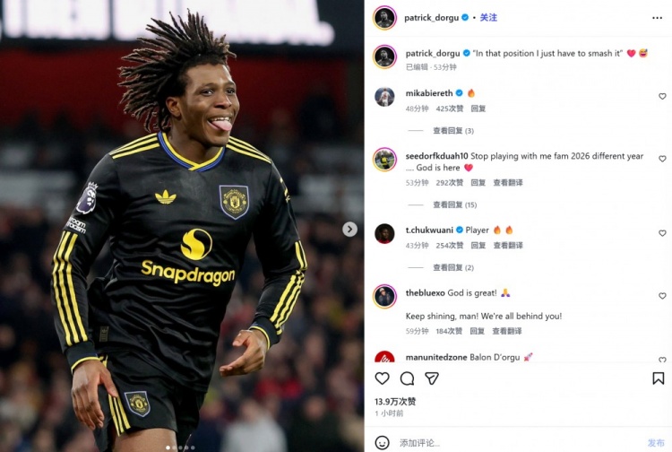 他也在赛后通过社媒晒出自己的庆祝照,并配文:“在那个位置,我只需要大力轰门❤️😅。”