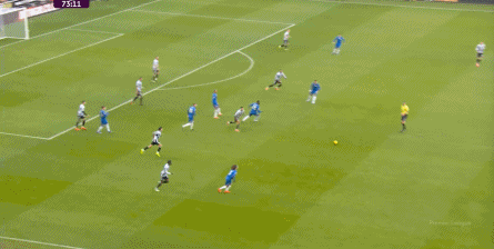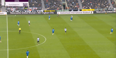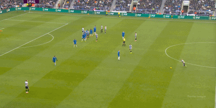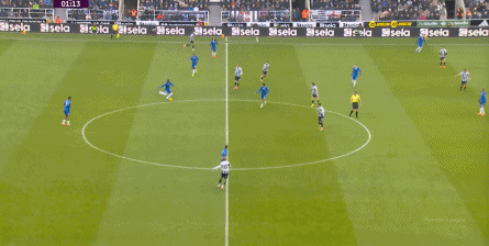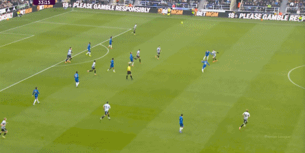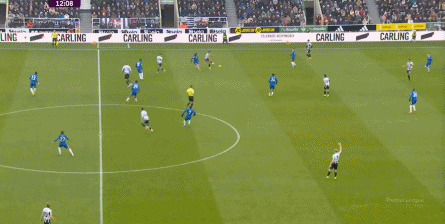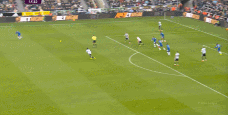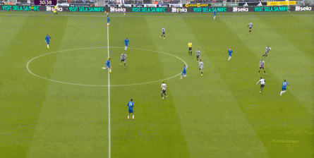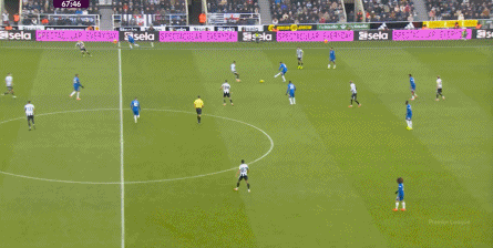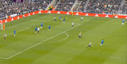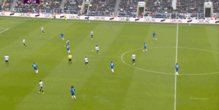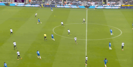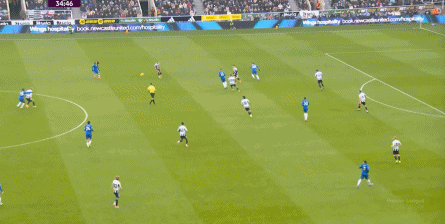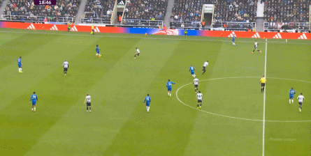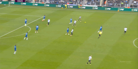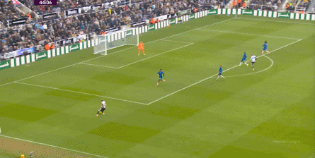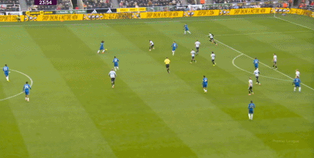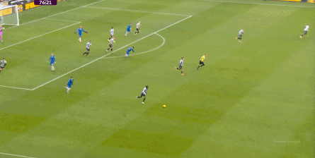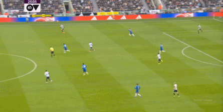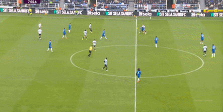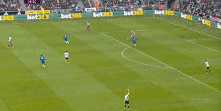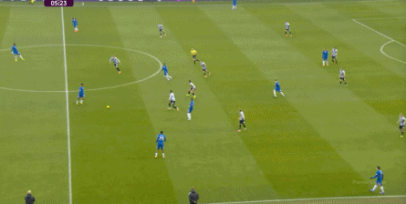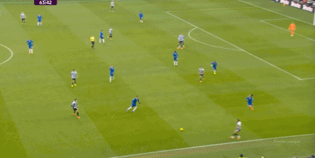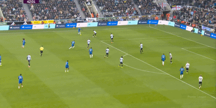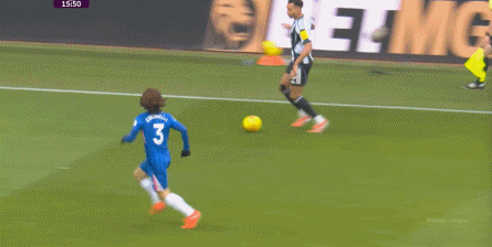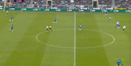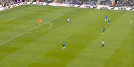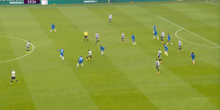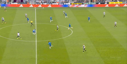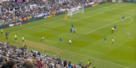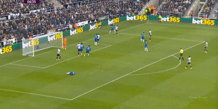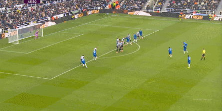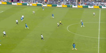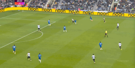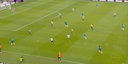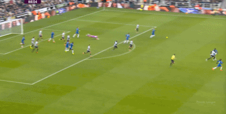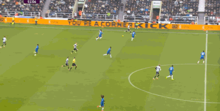 在此之后,切尔西又获得了一次左侧射球 的机会,过程中你可以看到,纽卡斯尔的高大后场球员们已经控制不住切尔西的锋线活动了: