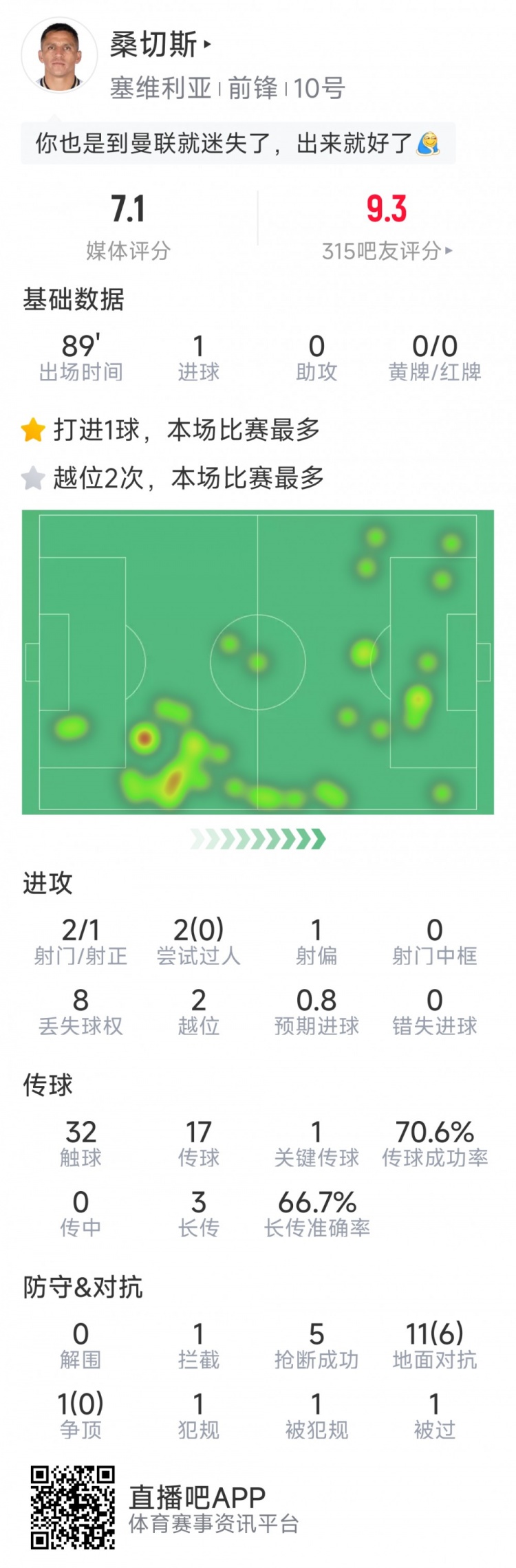 10月6日讯 在本轮西甲,塞维利亚4-1击败巴萨。本场赛事 桑切斯面对旧主破门,苏超在线直播高清视频无插件以下为他在本场数据: