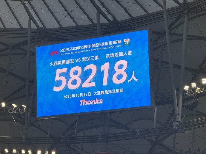 10月19日讯 据博主“从小就是大连球迷”透露,今天大连英博主场作战 观赛人群 人数为5.8万。