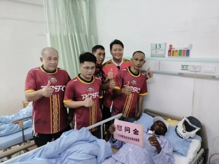 此前,黄威与队友塞缪尔·阿萨莫阿在赛事 中不幸重伤,牵动着无数球迷的心。10月10日,广西哈嘹球迷会自发发起募捐活动,短短一天时间便有103位球迷伸出援手,共募集到11493.72元爱心善款。10月12日,球迷代表已将其中5746.86元作为第一笔慰问金送到阿萨莫阿手中,剩余款项也计划送达黄威身边,为两位负伤 球员的治疗与复健 送去支持。