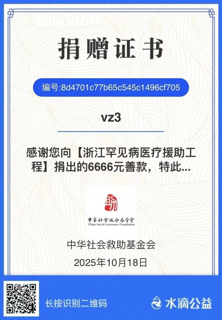 这份来自 “家里人” 的牵挂,让正在养伤的黄威备受感动。在收到球迷的爱心捐助后,经过与家人商议,他没有独自留存,而是选择将这份温暖延续放大,添上自己的心意凑成寓意顺遂的6666元,定向捐赠给罕见病医疗援助项目。“球迷们的爱给了我复健 的勇气,现在我想把这份爱传递给更需要帮助的人。” 黄威表示,希望能用这笔善款为罕见病患者带去希望,也以此回报球迷们的深情厚谊。