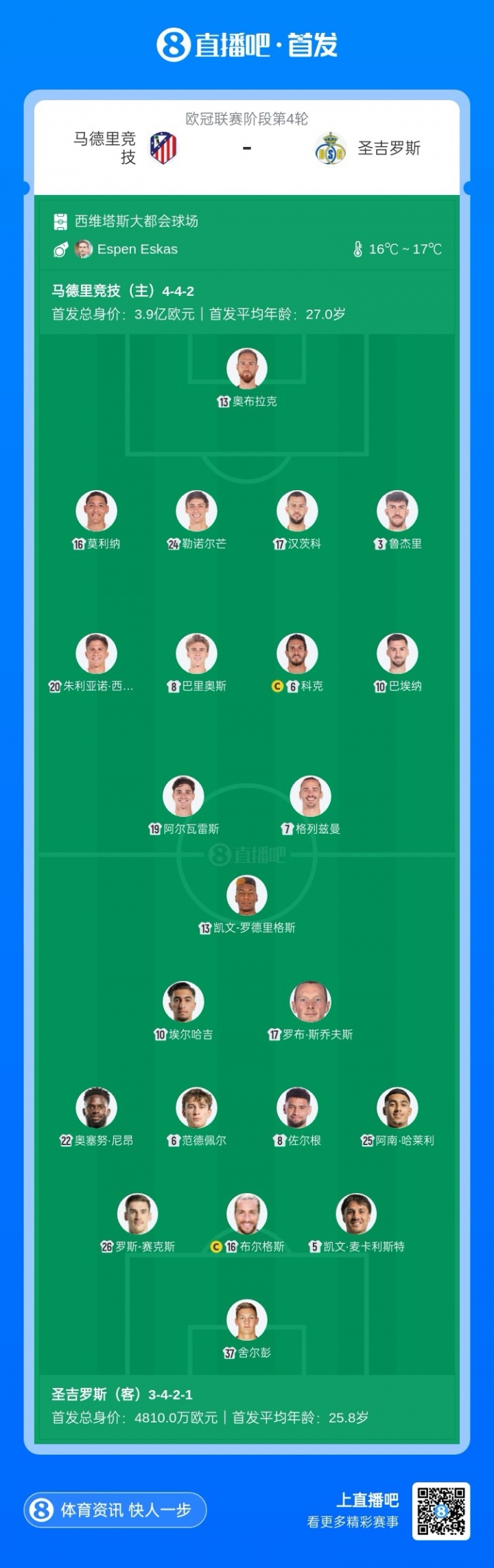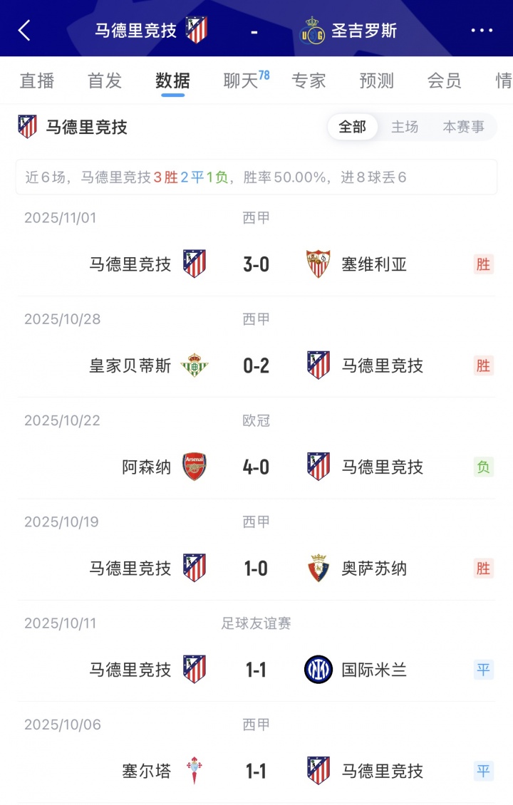 欧冠前3轮,马竞1胜2负,苏超直播在线观看上一轮0-4大败 阿森纳;圣吉罗斯1胜1负,上一轮上一轮0-4大败 国际米兰!