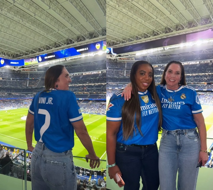 弗吉尼亚的母亲近期更新多条动态,定位在马德里。她身穿维尼修斯的运动活动 服 ,与维尼修斯的母亲一起在伯纳乌观战了皇马vs瓦伦西亚的西甲赛事 ,她还与弗吉尼亚和维尼修斯等人一起过了万圣节。