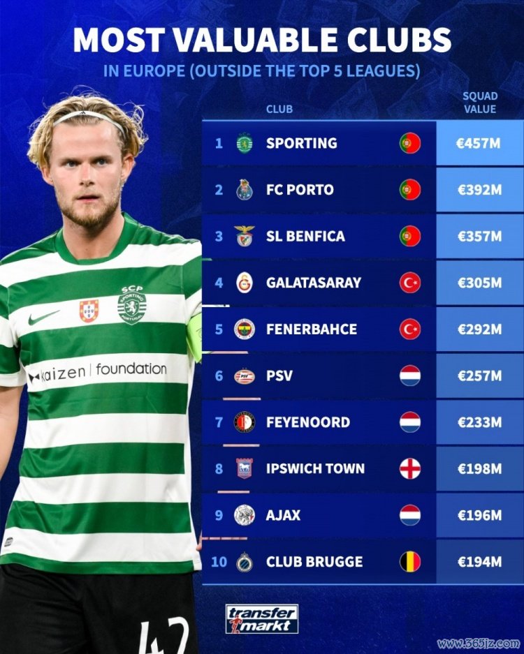 11月11日讯 德国转会市场盘点了五大职业联赛 之外的欧洲球队身价,葡萄牙体育4.57亿欧元排名第一。